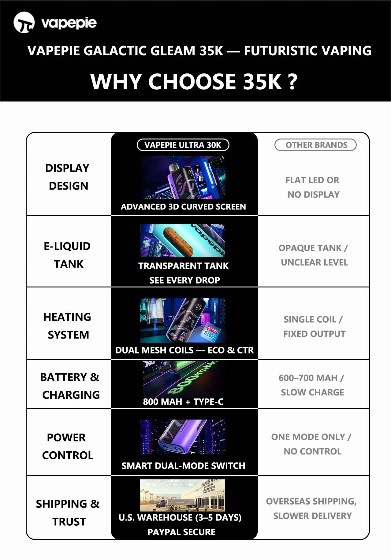 🧠 Vapepie Galactic Gleam 35000 Puff Vape – FAQ