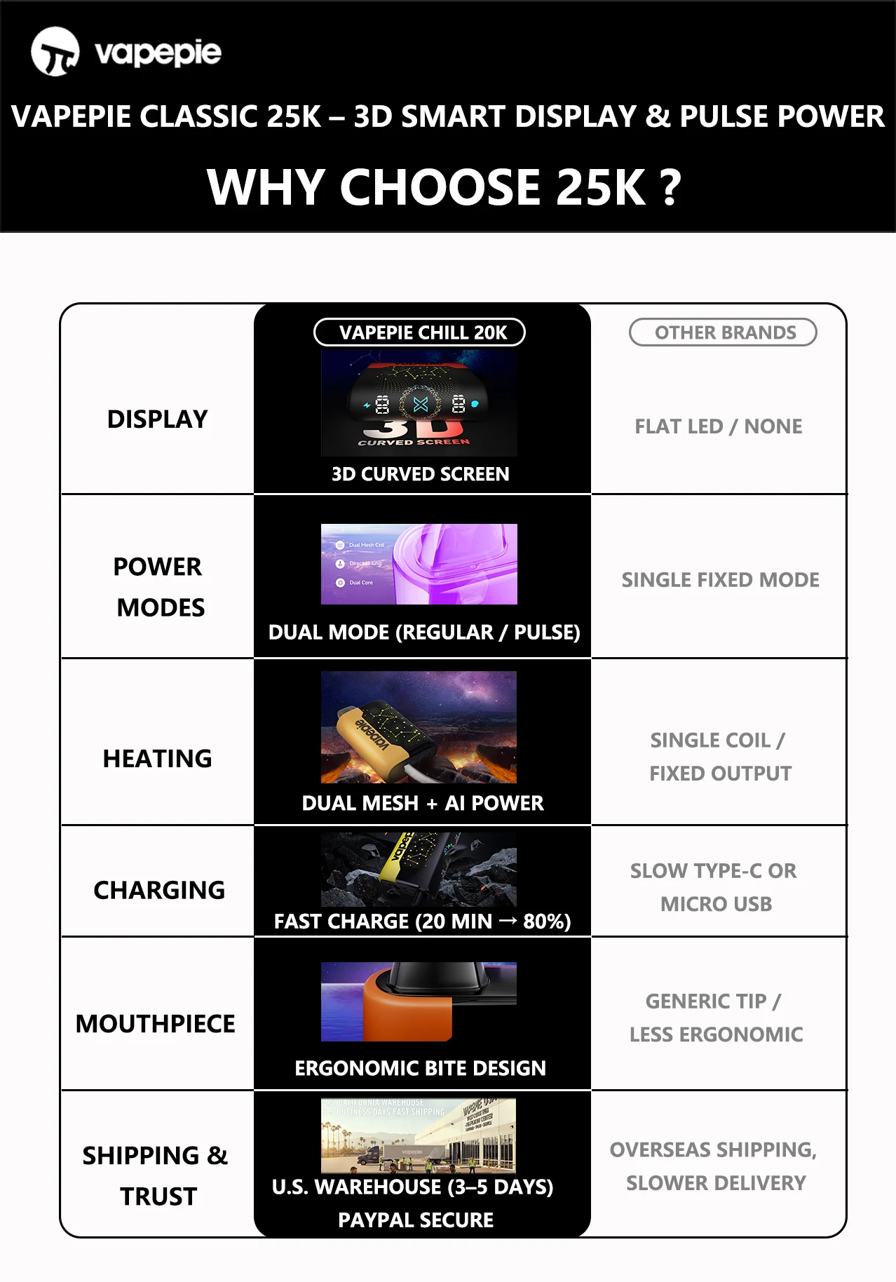 💬 Vapepie Classic 25,000 Puff Disposable Vape – FAQ