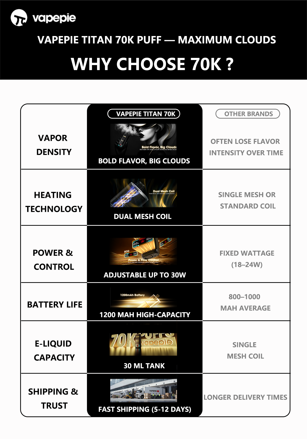 A1: Up to 70,000 puffs for ultra-long-lasting performance.
