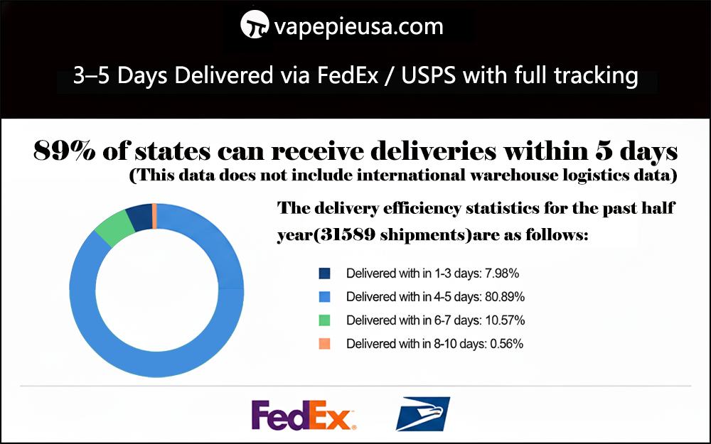 A8: From US warehouse: 3–5 business days.